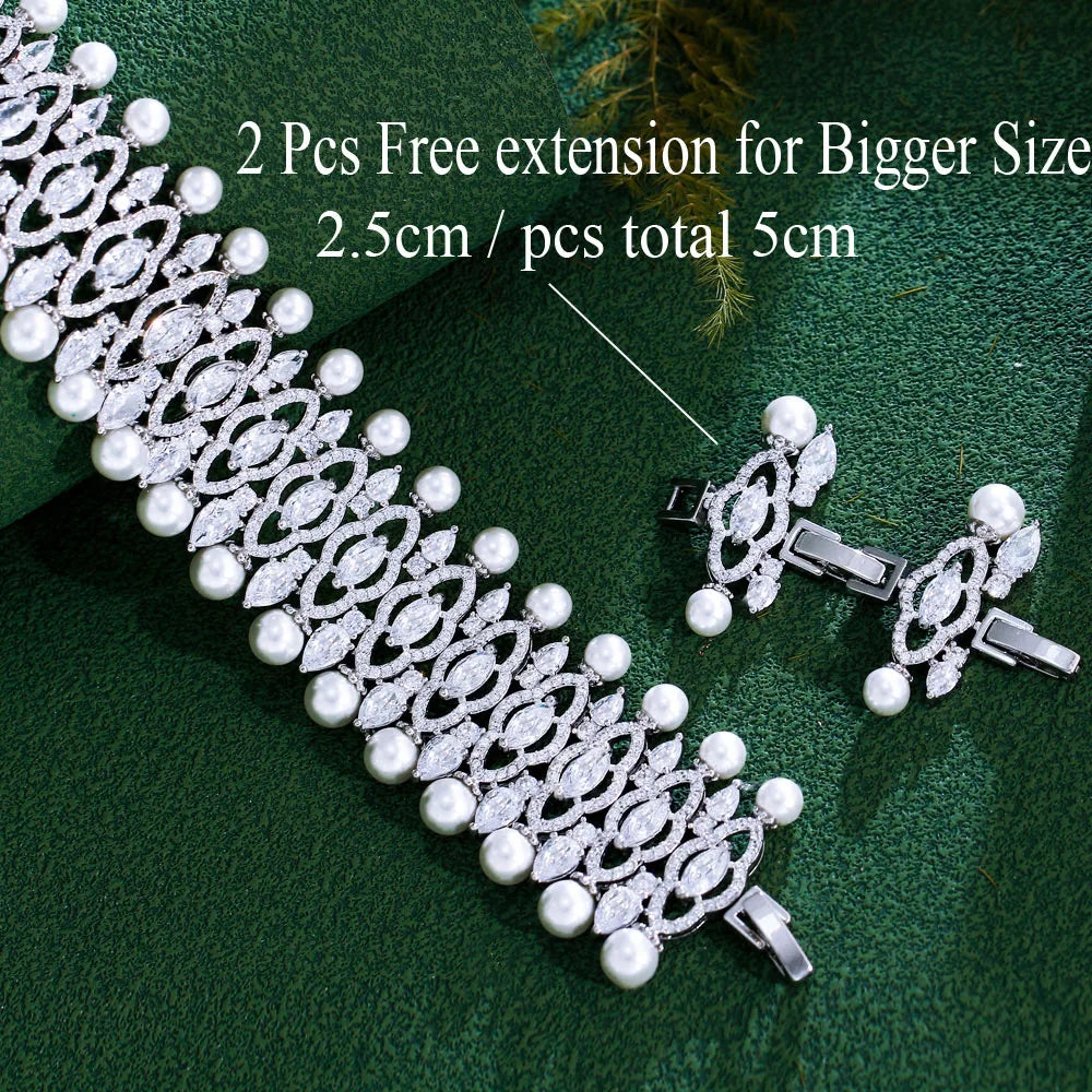 Luxury Jewellery Set Cubic Zirconia Crystal Pearl Necklace and Earrings Set